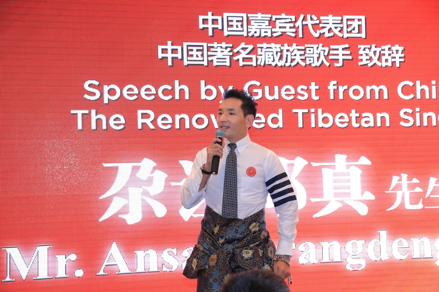 照片說明:中国著名藏族歌手尕让邓真致词