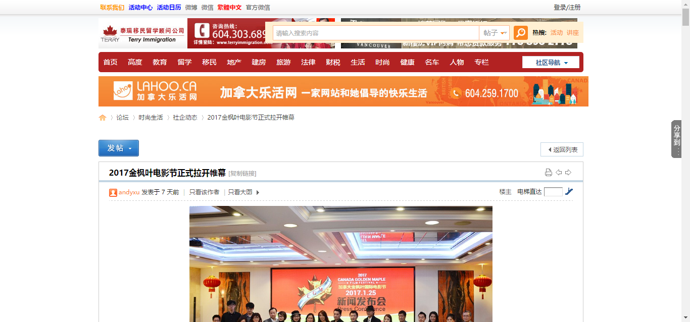 星岛日报为2017金枫叶电影节发布会发表精彩报道