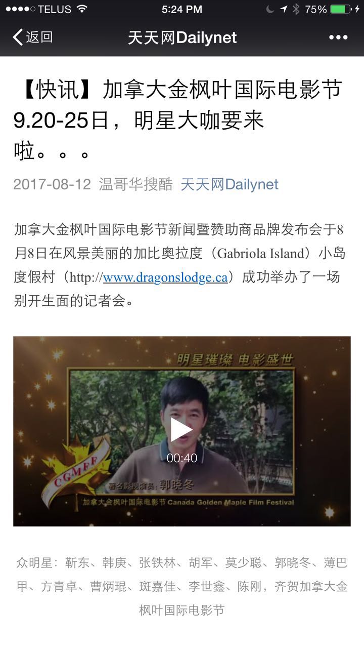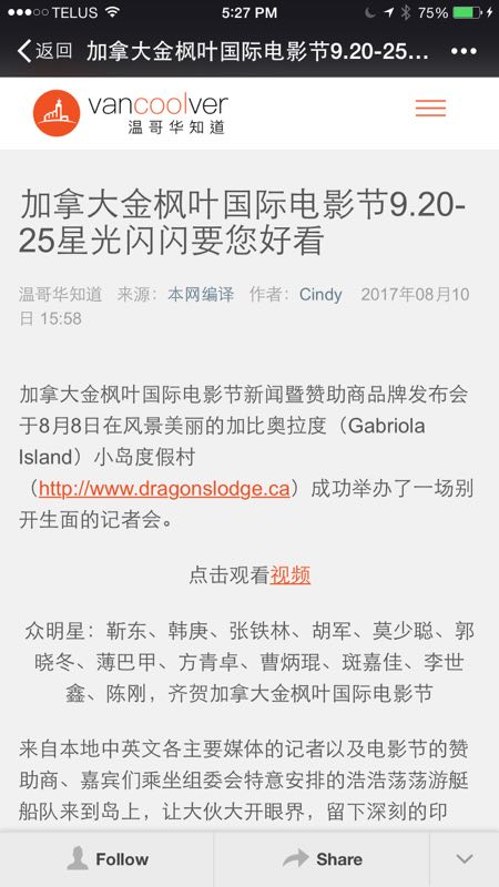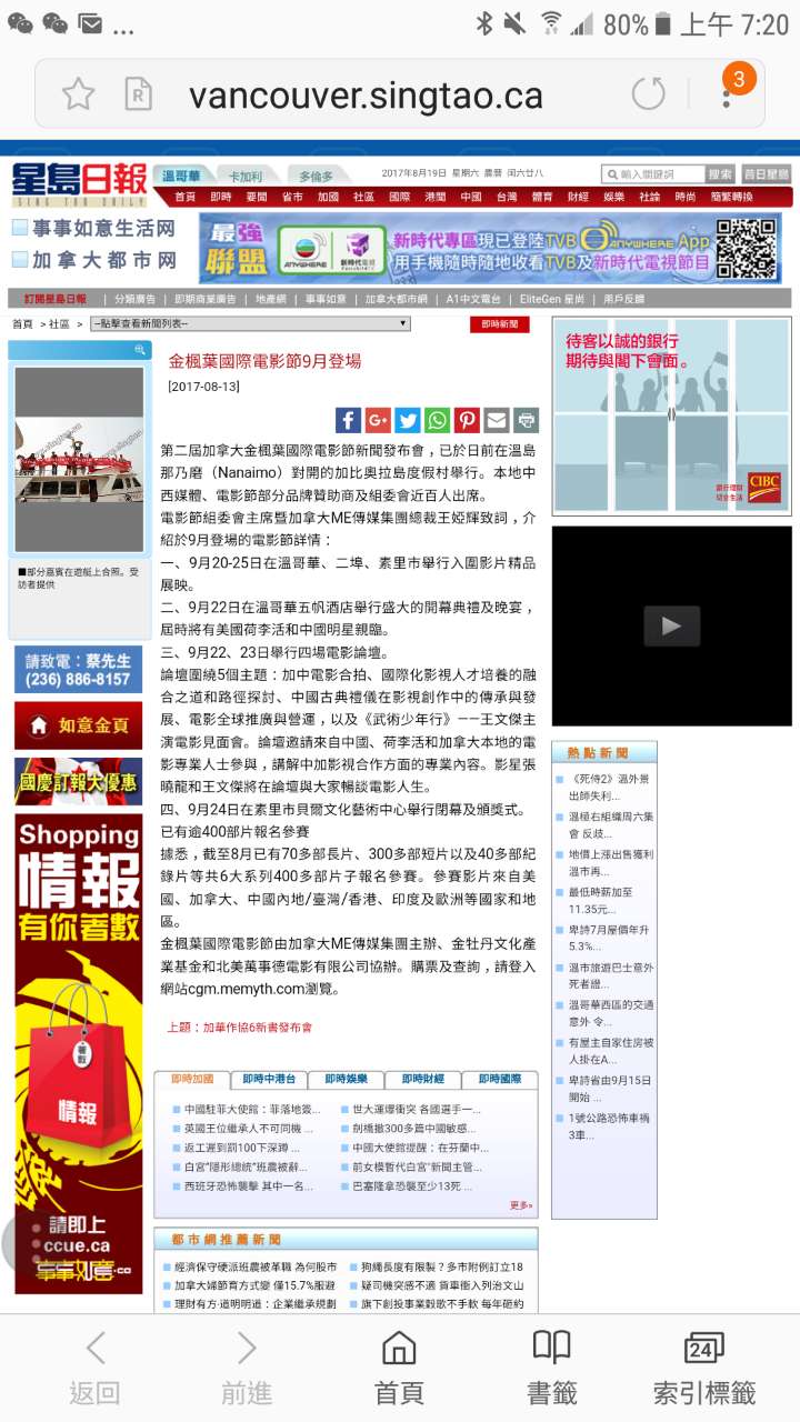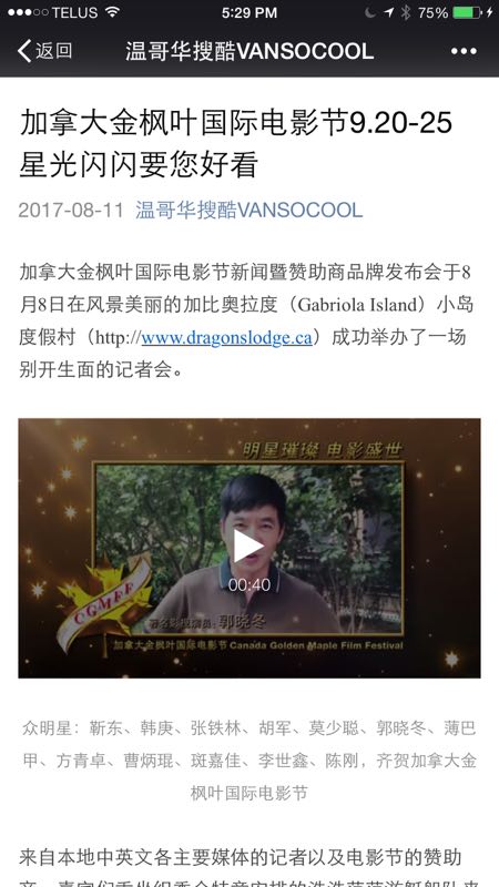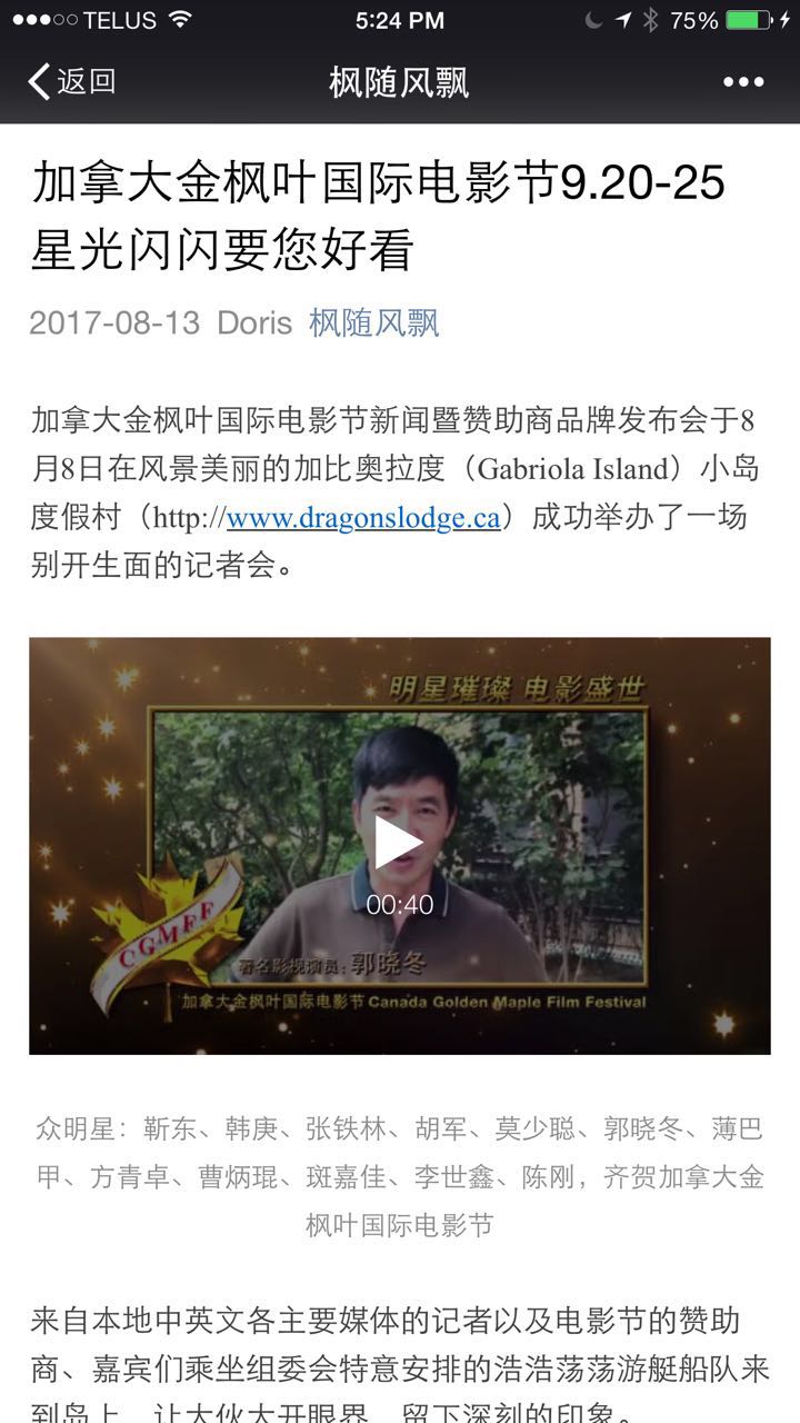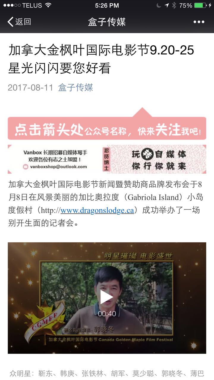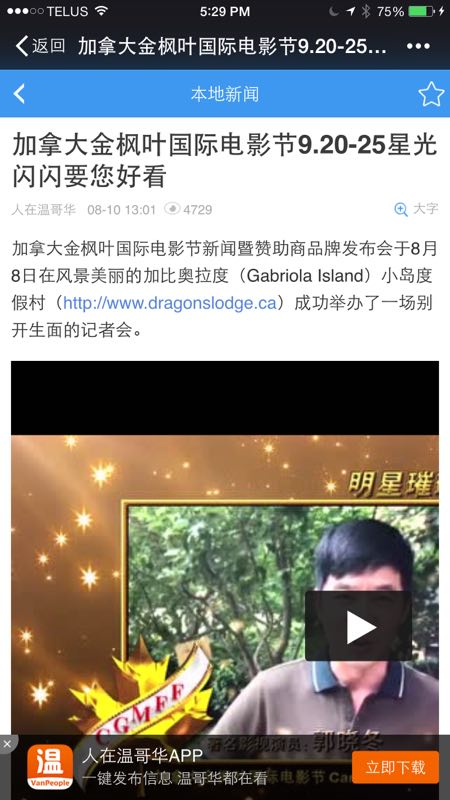 金枫叶电影节组委会在此感谢温哥华个主流媒体对2017金枫叶电影节品牌发布会的特别报道2017-08-22