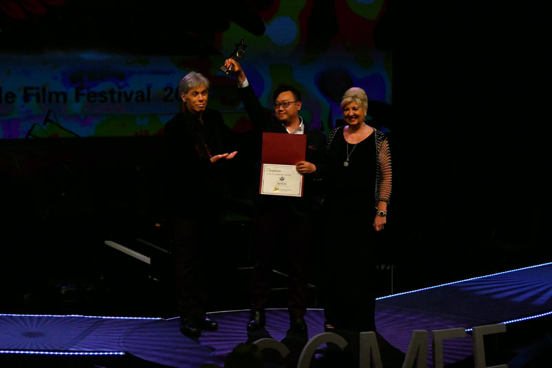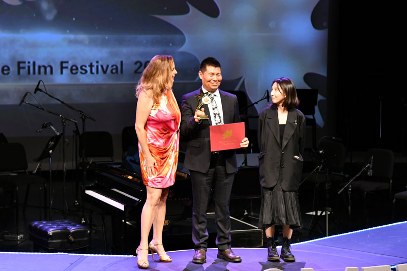 短片单元“最佳短片导演”颁奖嘉宾:金枫叶国际电影节执行秘书长Catherine女士,执行秘书长Zen 先生