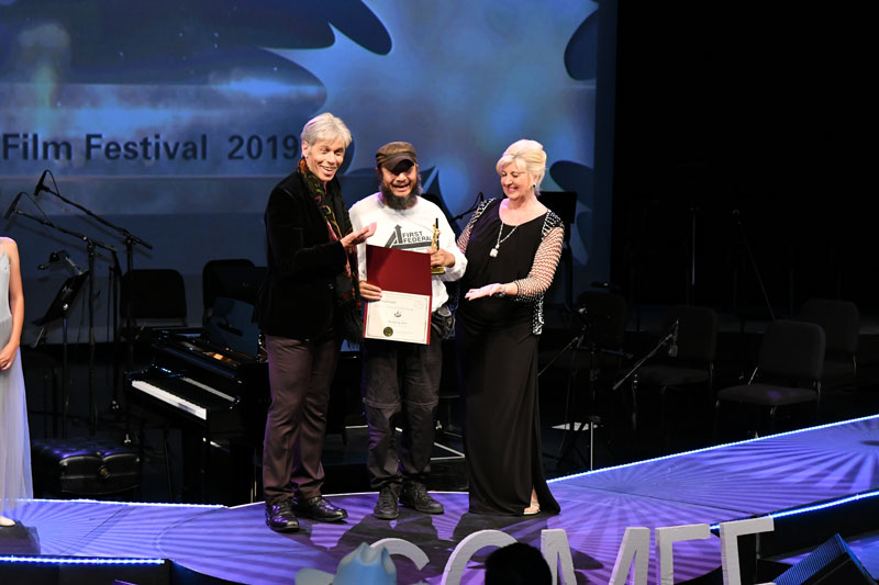 组委会特别大奖“最佳民族影片国际贡献奖”颁奖嘉宾:金枫叶国际电影节组委会荣誉主席余俊作先生,加拿大著名电影导演Cliff 先生