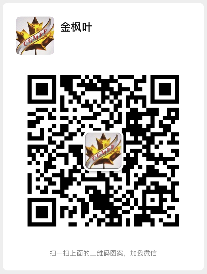 加拿大金枫叶国际电影节Canada Golden Maple International Film Festival,简称CGMIFF,是在加拿大官方正式注册认证的促进国际电影人电影公司相互交流与合作的国际文化艺术节日,是加拿大倡导的多元文化的重要部分。金枫叶国际电影节的定位:全球平台、文化交融、大众参与。根据这个主题,我们希望吸引到各国电影人参与,特别是为年轻电影人施展才华提供国际平台和机会,架起一座东西电影人互动的友谊桥梁。近几年,金枫叶国际电影节已成为了中国电影人和电影公司进入北美国际电影市场最重要的窗口与合作伙伴,为许多在电影领域追逐梦想的优秀电影人和电影公司提供了竞争国际荣誉与深度国际合作的良好机会。